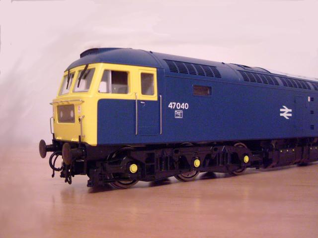 Ready to run O gauge models that are suitable for battery conversion are not introduced very often, so Heljan's recent production of a Class 47 model was awaited with interest. As built, the model is intended to be powered by the conventional two rail system. The club's layout has no power, so to run at Brambleton, batteries and radio control would have to be installed. The photo below shows the body removed from the new model. Given that the Class 47 is a fairly large loco, it was expected there would be plenty of space for the batteries, radio receiver and speed controller. In fact this turned out to be not the case. Most of the interior is taken up with a metal casting that forms the base of the body. Each of the two vertically mounted motors have large flywheels. In addition to this, there is also a circuit board that brings together the various connections to the pick ups, motors, lights and fan motor. |